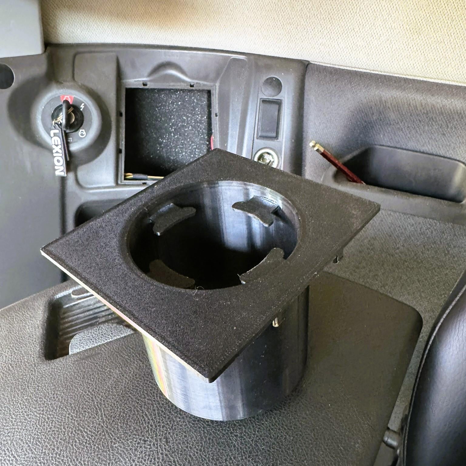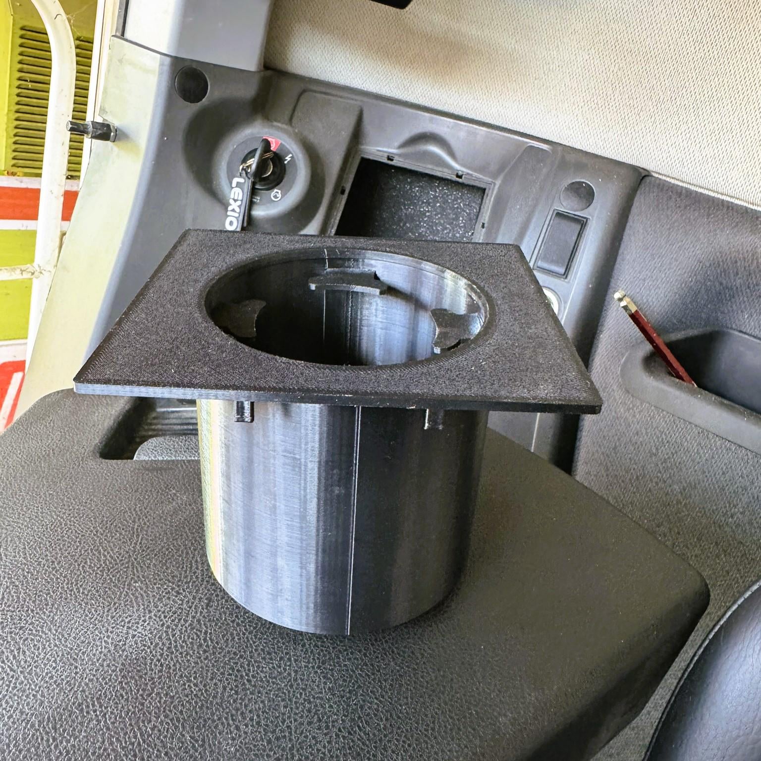 Upgrade your CLAAS Lexion or Tucano combine with our custom-designed Plug & Play cup holder, perfectly suited for models without an integrated computer, featuring the standard grey plastic side panel.